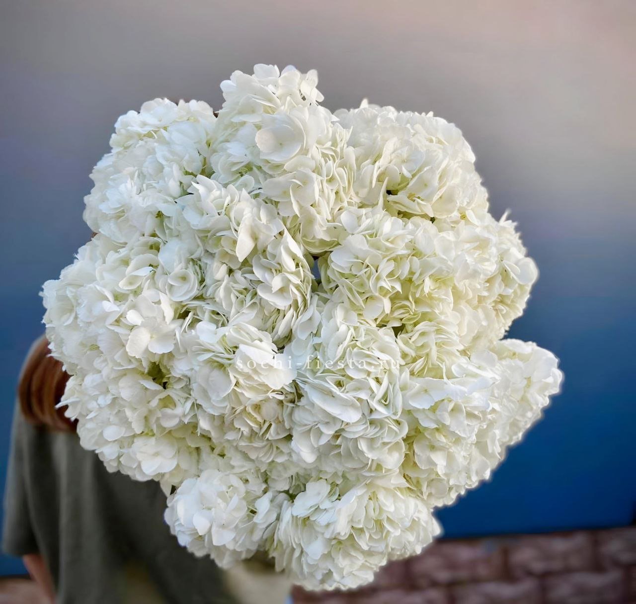 Семь соцветий гортензии раскрываются воздушным облаком с мягкими переходами оттенков. Букет дарит ощущение лёгкости и свежести летнего сада в любое время года.