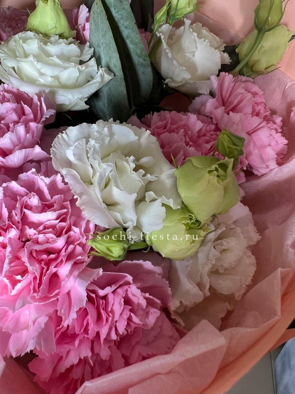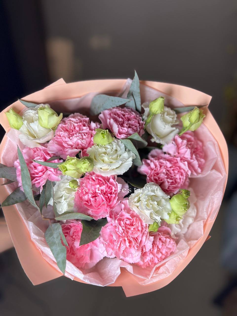 Для заказа товара "Букет гвоздик и эустом "Сири"" с доставкой в Набережных Челнах нажмите в корзину