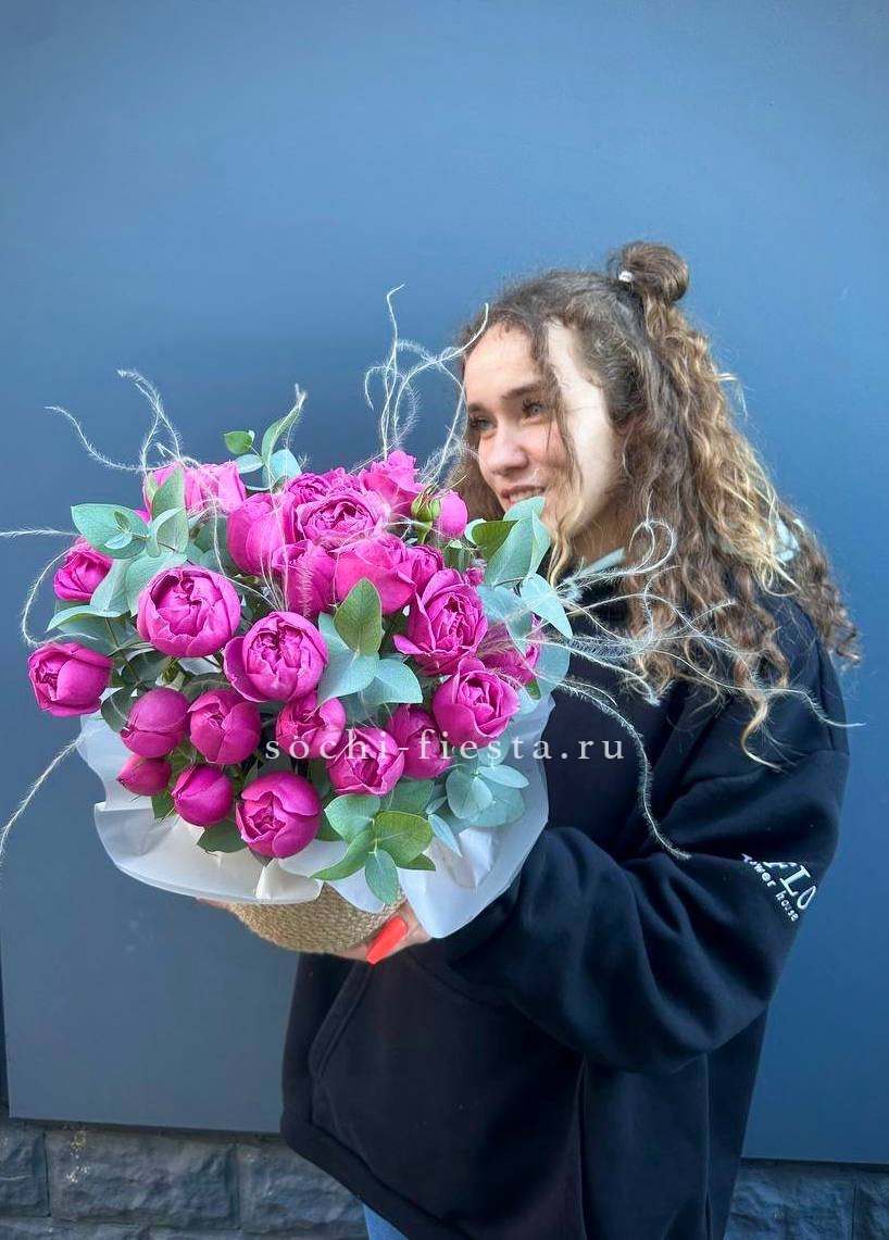 Для заказа товара "Пионовидные розы в джутовом кашпо " с доставкой в Набережных Челнах нажмите в корзину