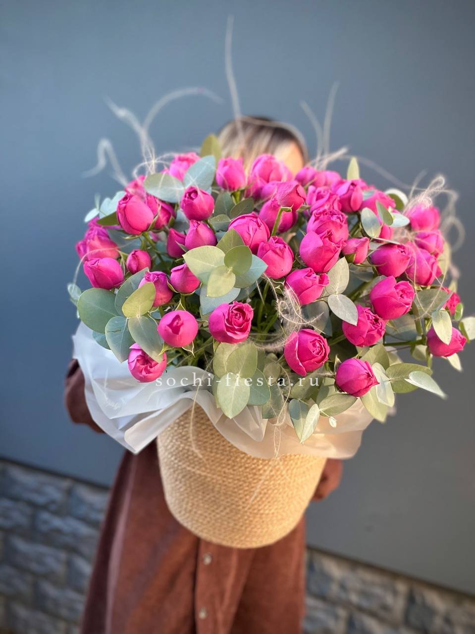Для заказа товара "Пионовидные розы в джутовом кашпо " с доставкой в Набережных Челнах нажмите в корзину