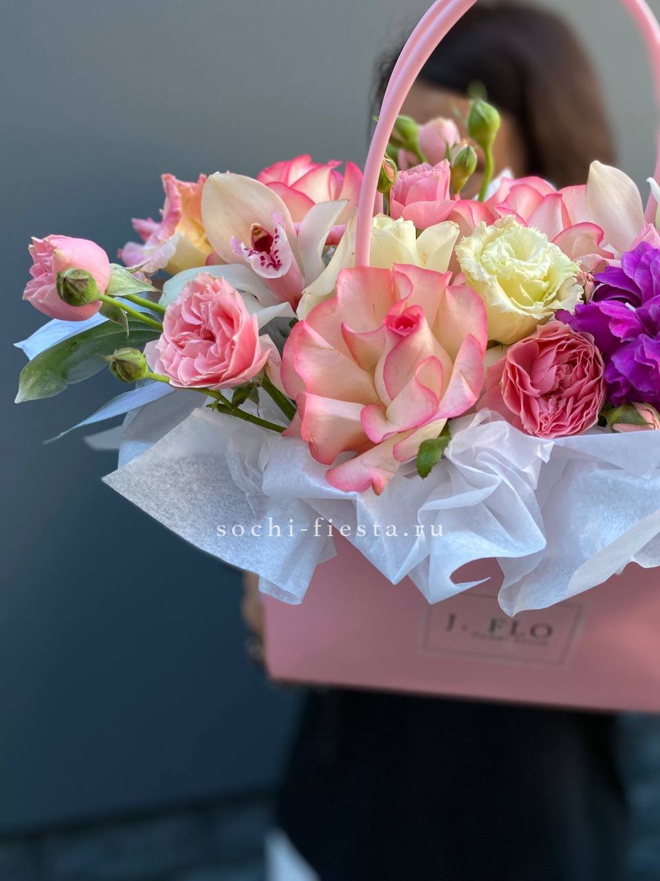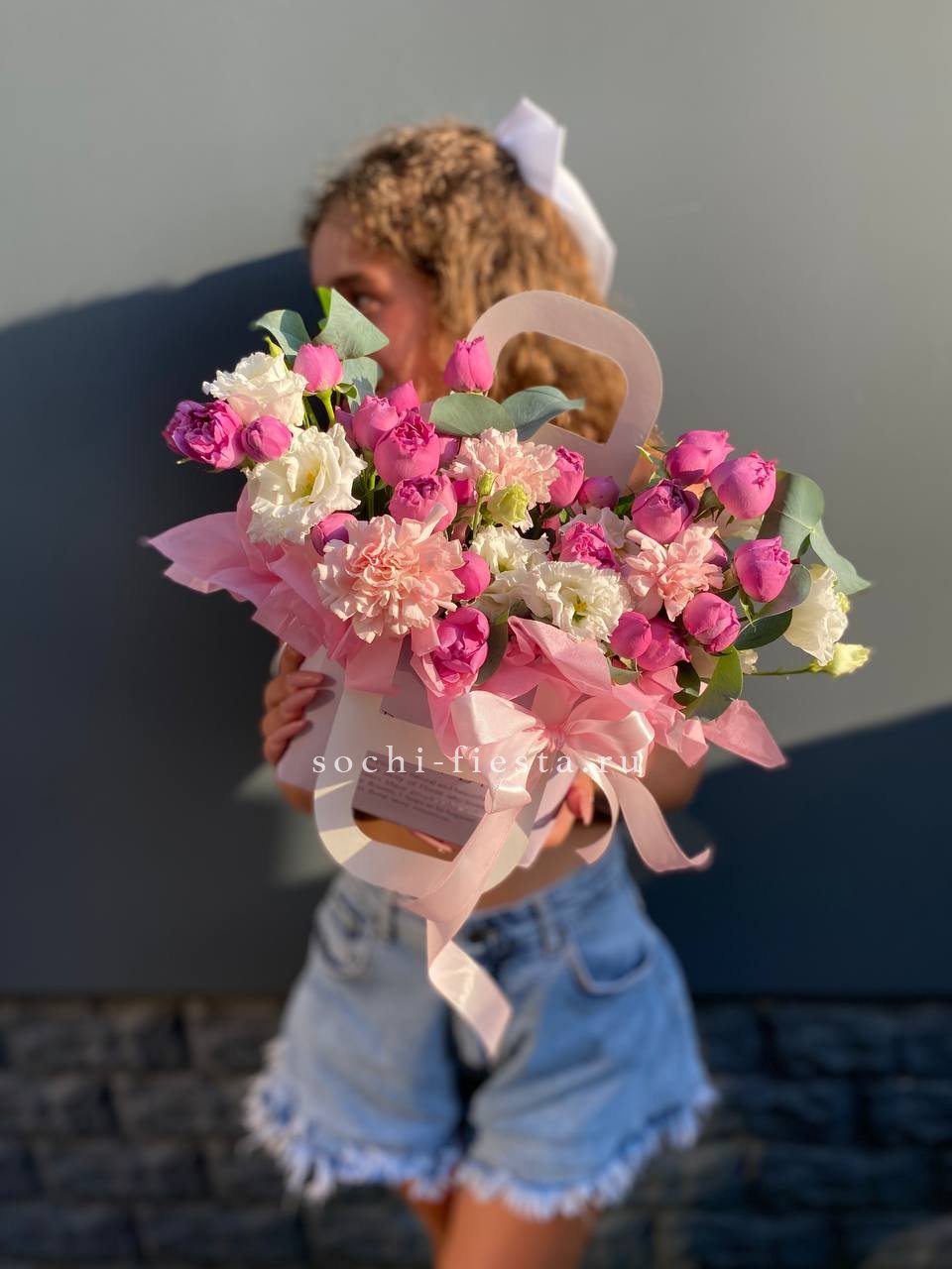 Для заказа товара "Сумочка с кустовой розой и диантусами" с доставкой в Набережных Челнах нажмите в корзину