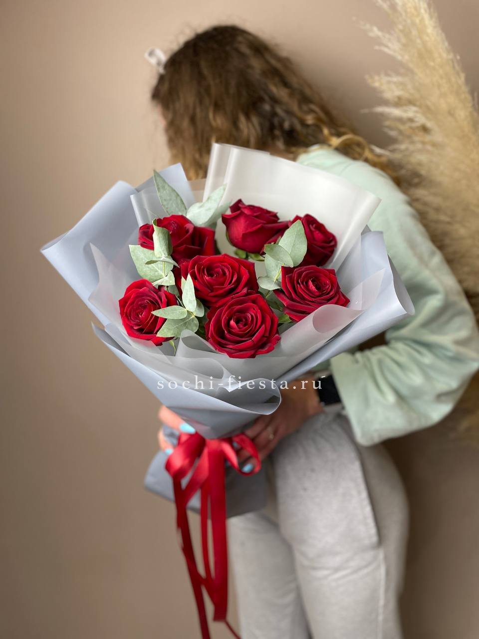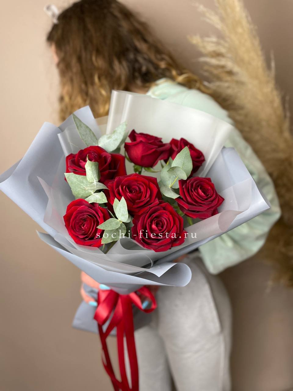 статица, роза, эустома, эвкалипт, пленка, лента