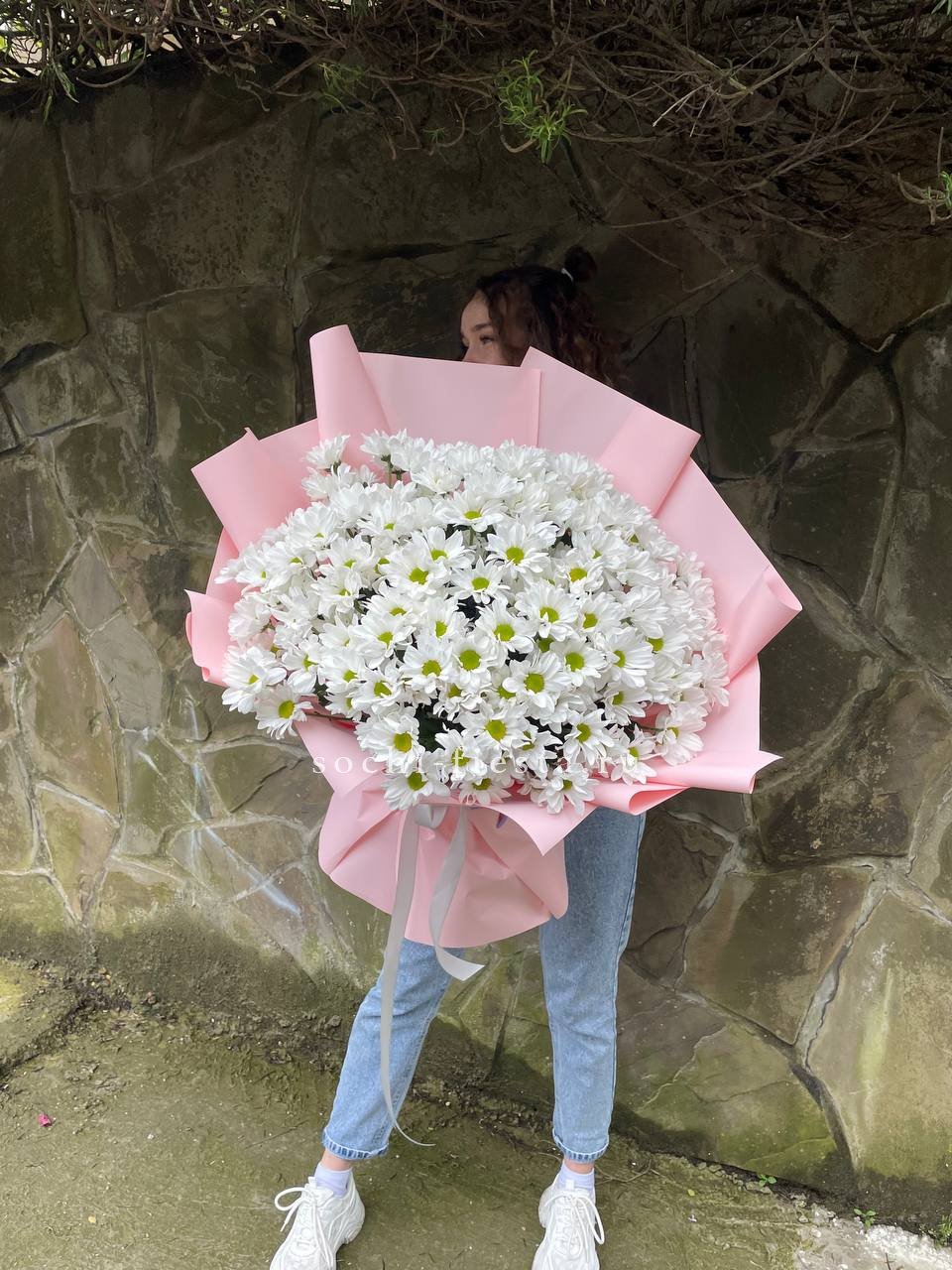 хризантема одноголовая 7 шт., лента, дизайнерская упаковка.