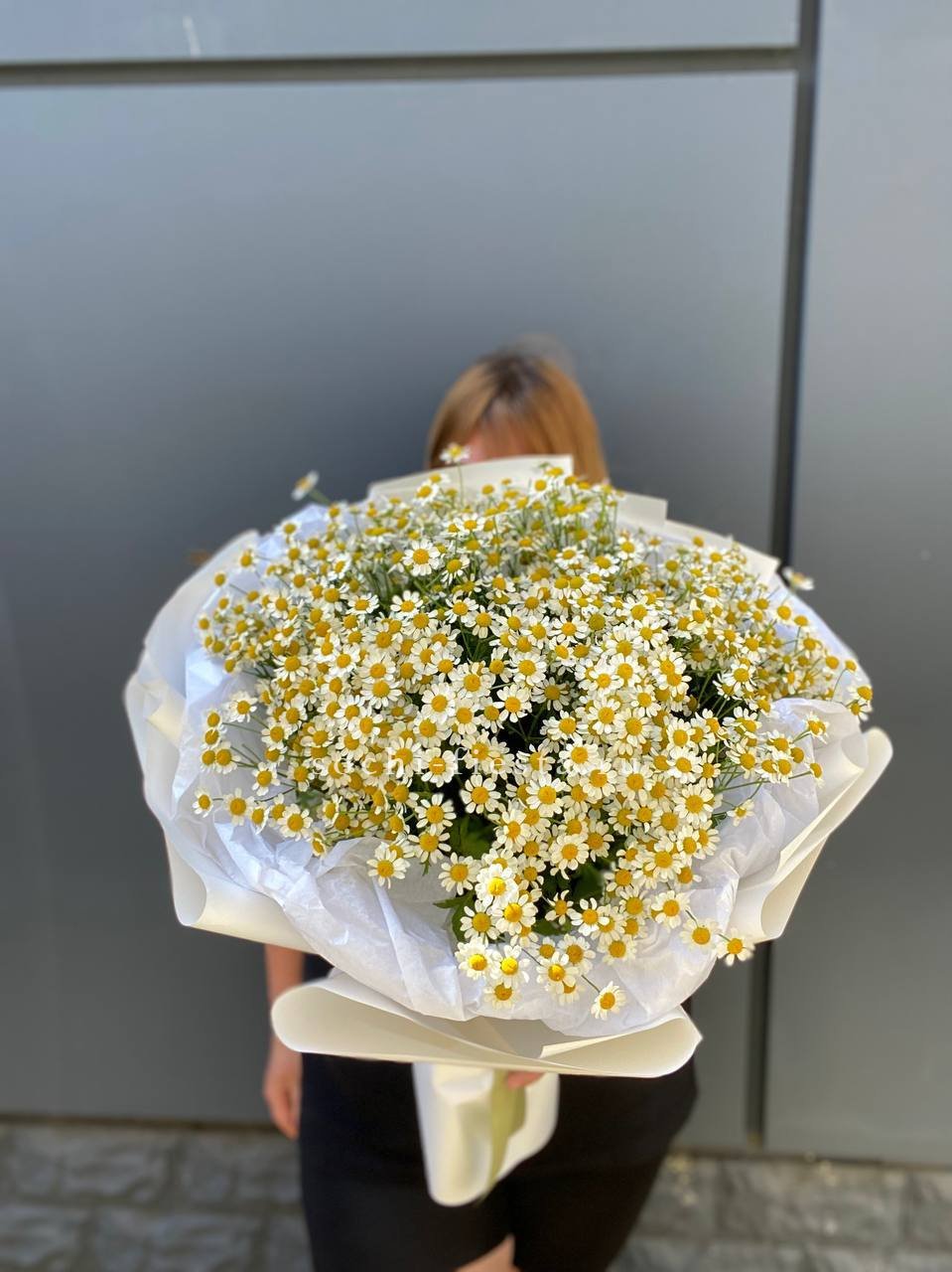 ромашки (танацетум камилла) - 15 веток, лента, упаковка.