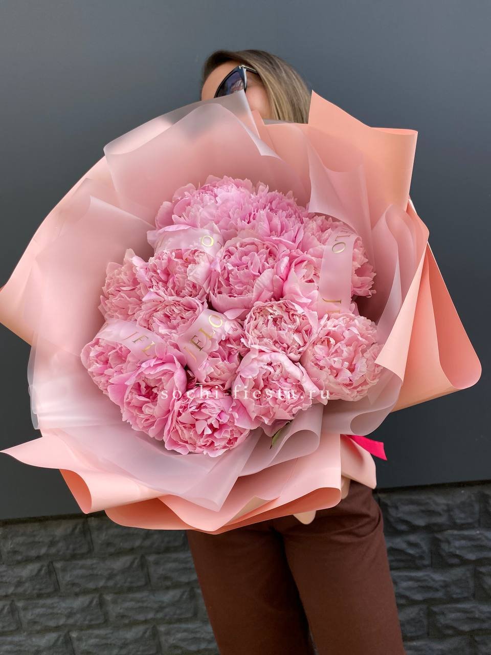 Пятнадцать бутонов в розовой гамме собраны в свободную форму с воздушной структурой. Комбинированная упаковка поддерживает лёгкость силуэта и придаёт букету законченный вид.