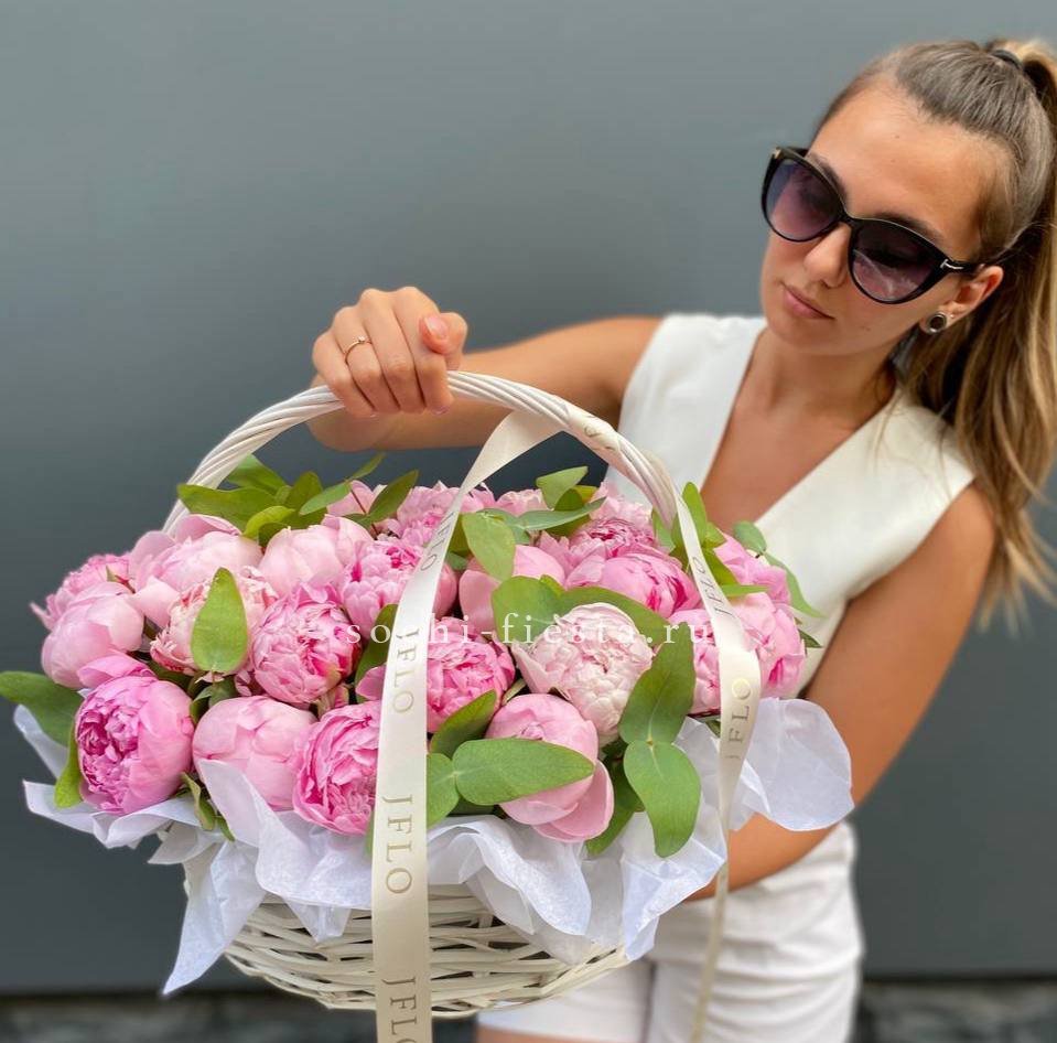 29 пионов в корзине