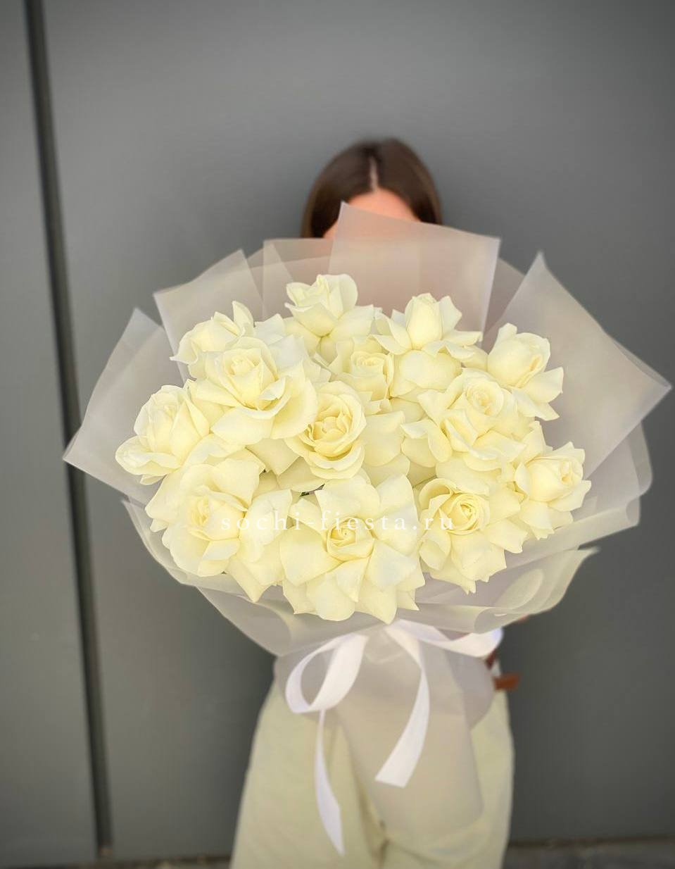 вывернутые розы - 21 шт., эвкалипт, лента, упаковка.