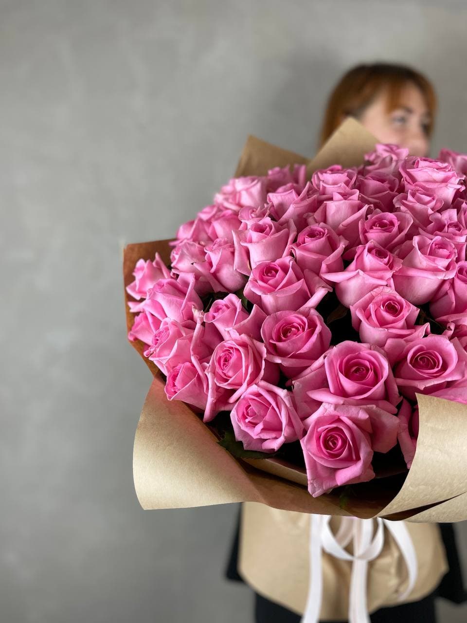 101 розовая роза, лента, упаковка на выбор.
