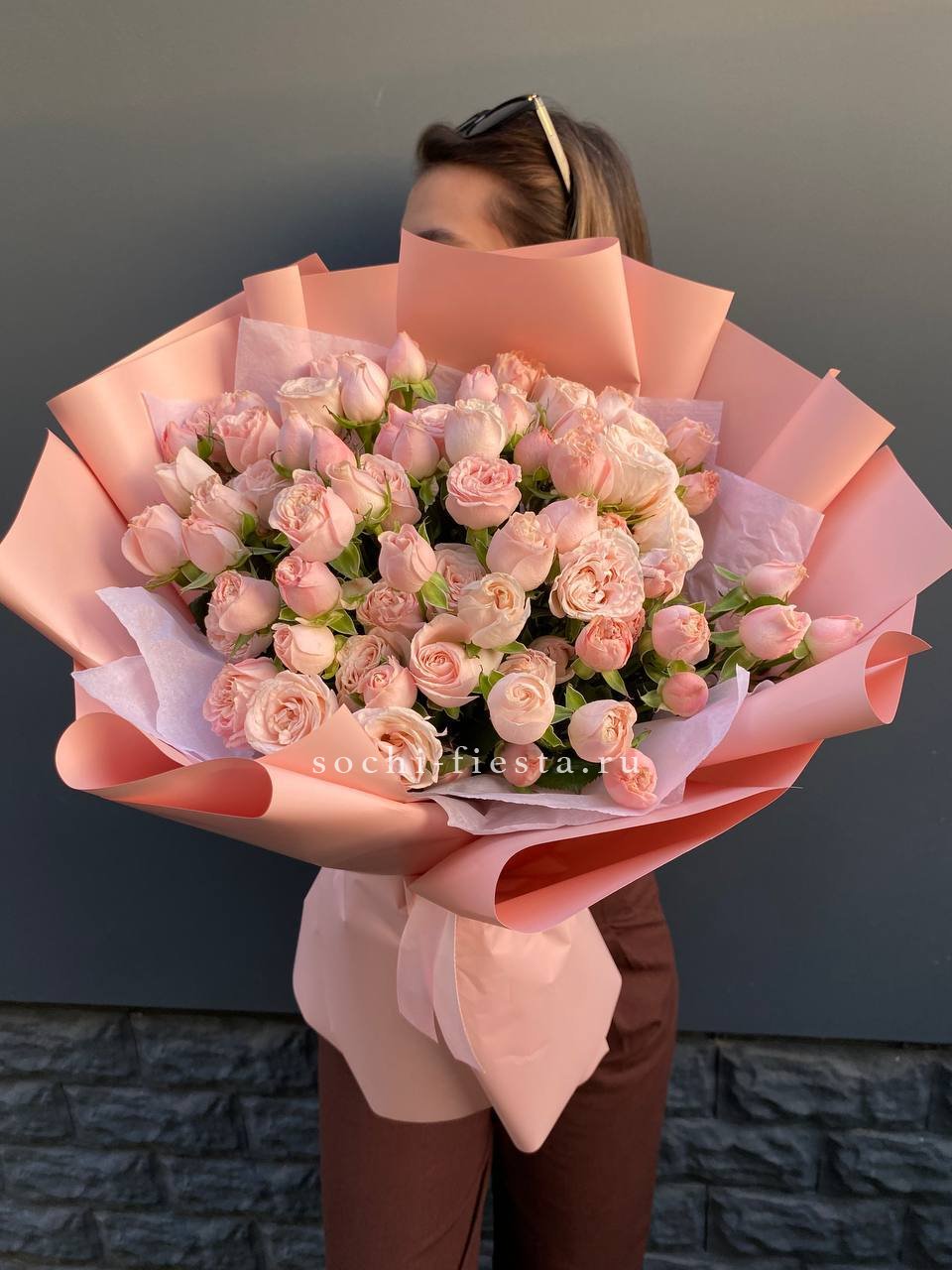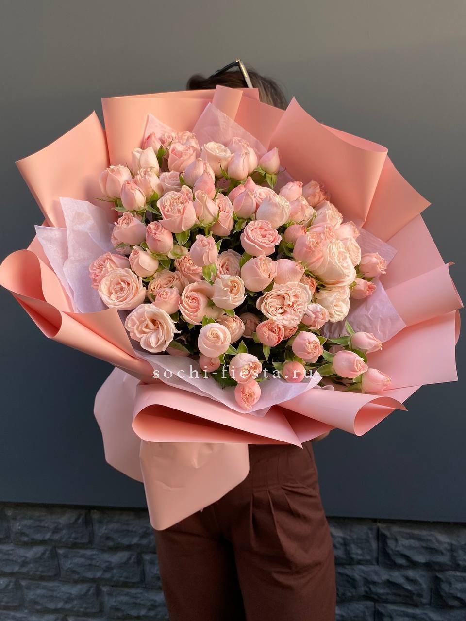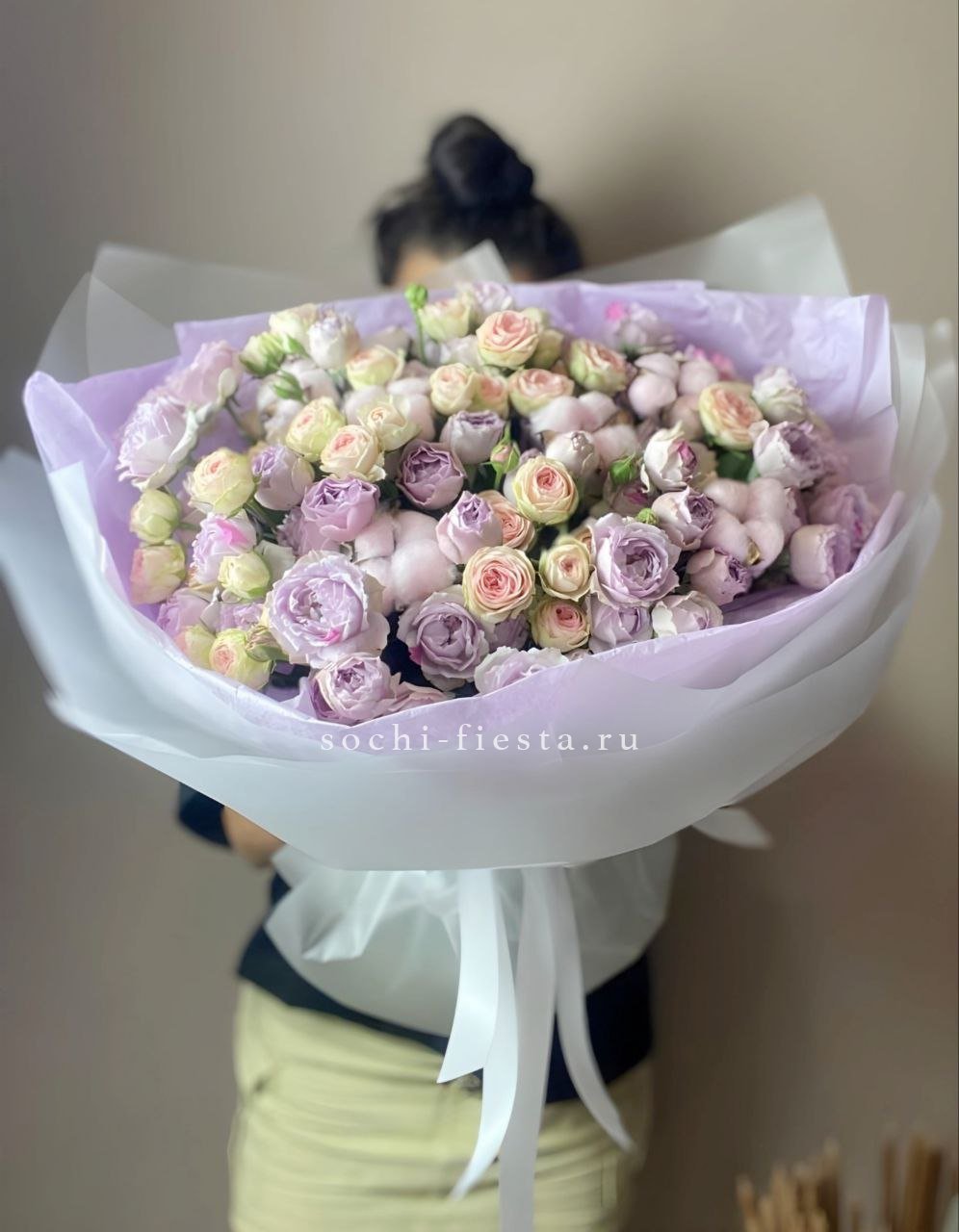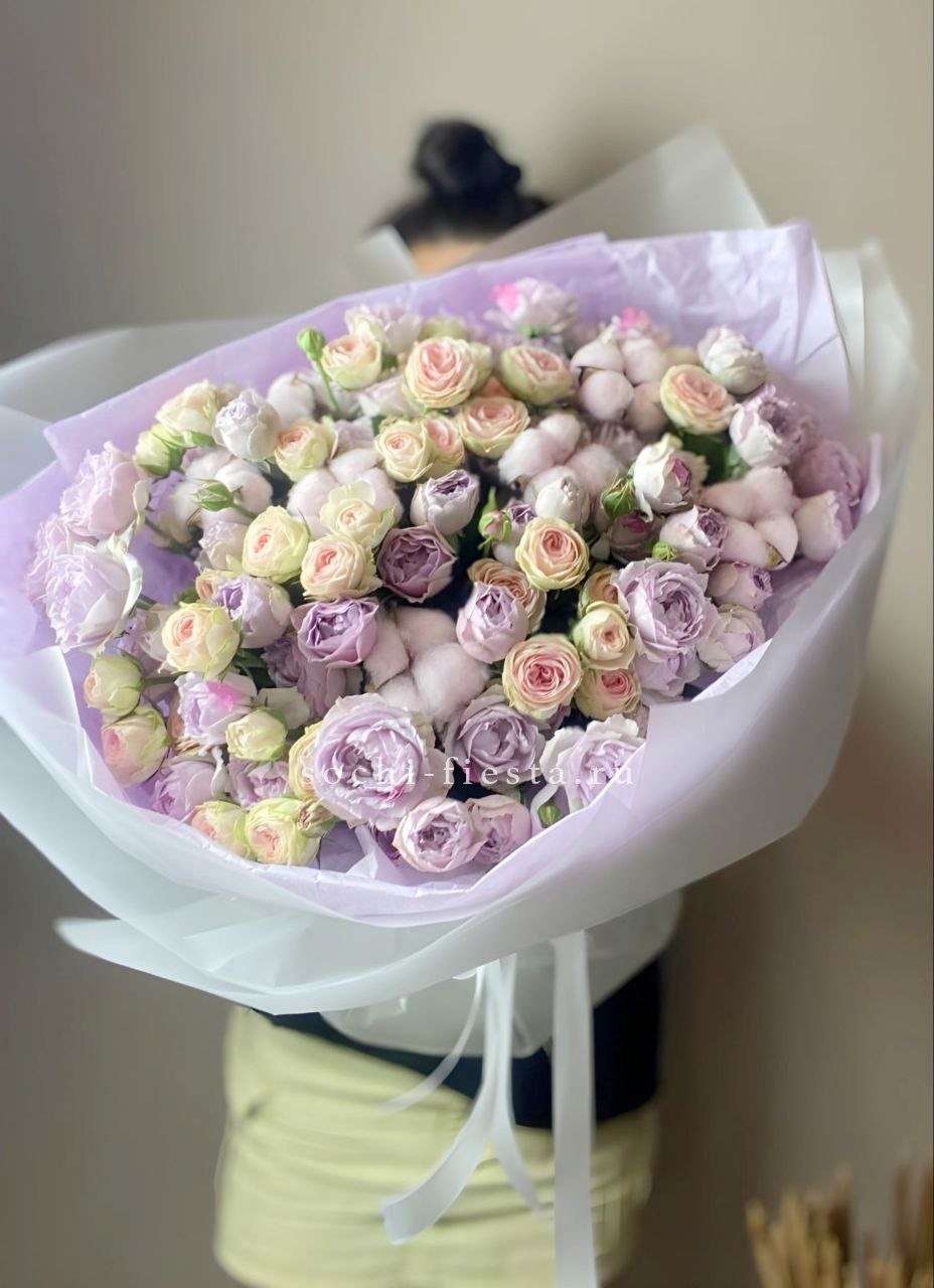 15 кустовых роз спрей, лента, упаковка на выбор.