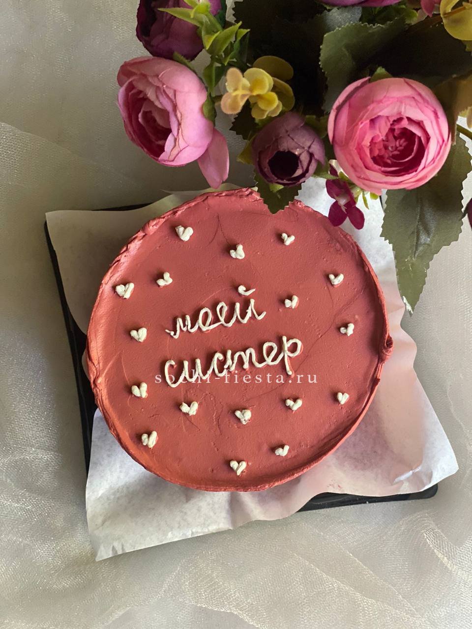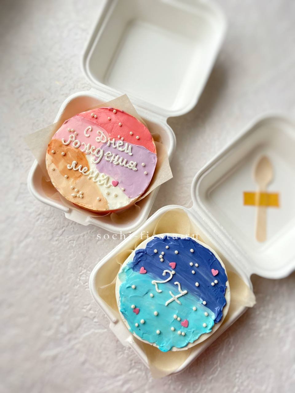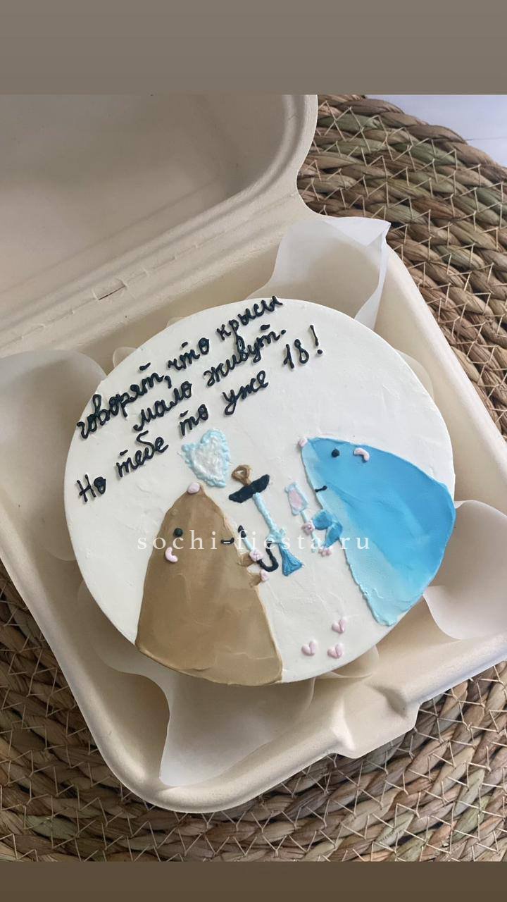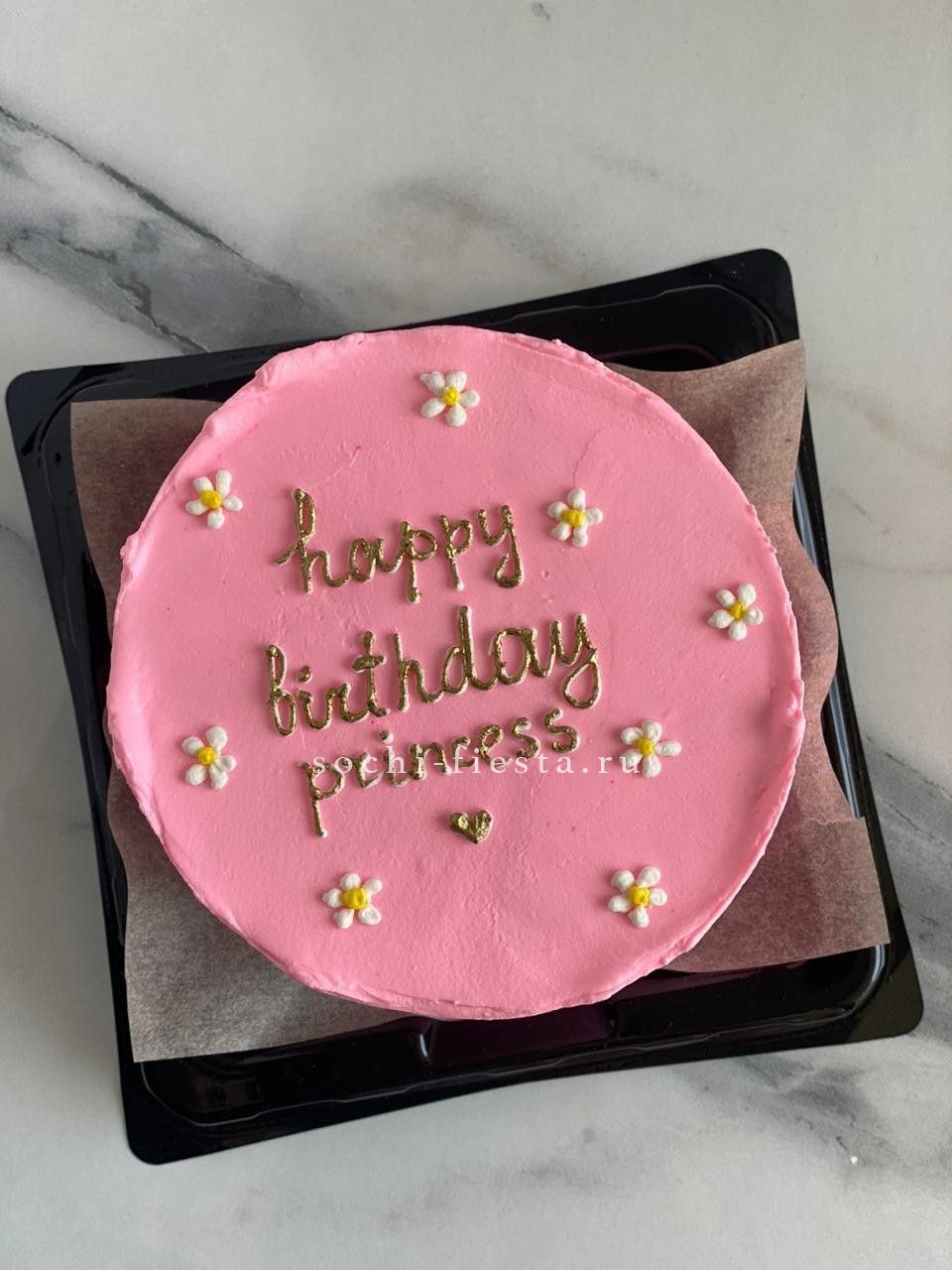 Дизайнерский бенто-торт ручной работы с поздравительной надписью и готовым декором. Формат удобен для камерного чаепития или как дополнение к основному подарку.